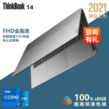 联想ThinkBook 14 2021款 14英寸轻薄笔记本电脑 【08CD】 11代酷睿i7-1165G7 独显 16G 512G 100%sRGB 高色域 标配